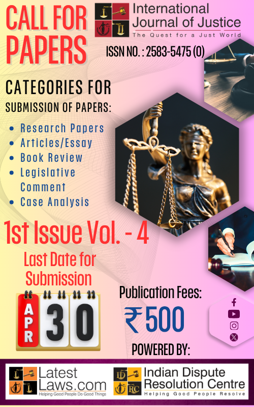 The International Journal of Justice (ISSN No.: 2583-5475 (O)) is an initiative of LatestLaws.com and the Indian Dispute Resolution Centre.
