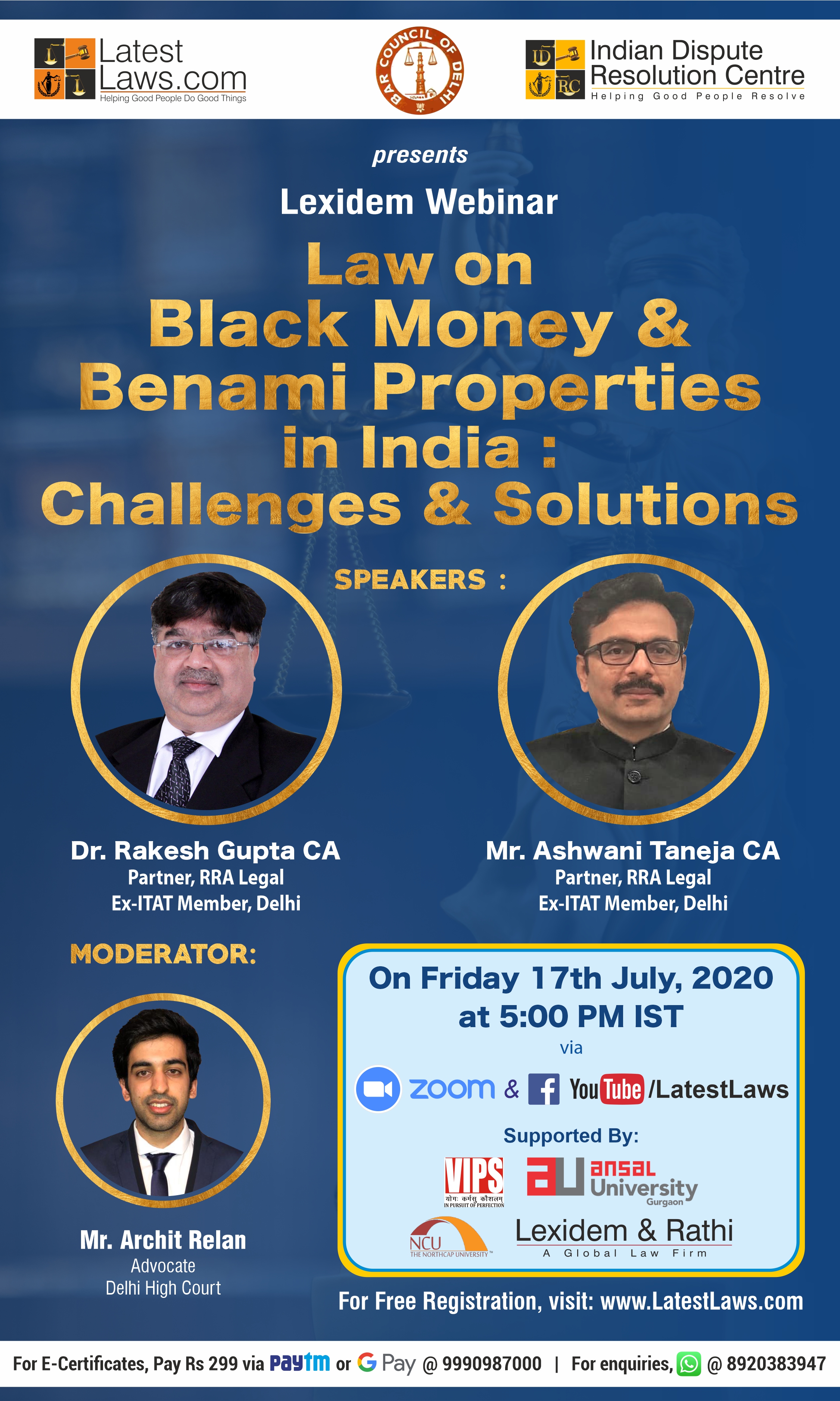 LatestLaws.com, BCD and Indian Dispute Resolution Centre present Lexidem Webinar on Benami and Black Money Law in India: Issues and Solutions