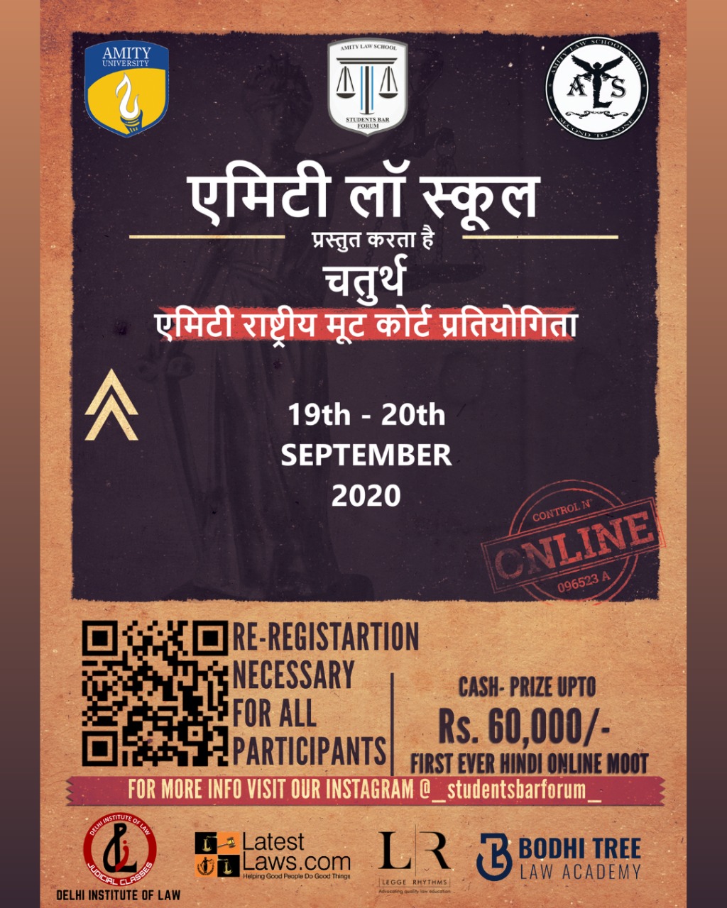 LatestLaws.com Partner Event: 4th Amity National Hindi Moot Court Competition 2020 [Sept 19th – 20th, Noida]: Register by Aug 31, 2020