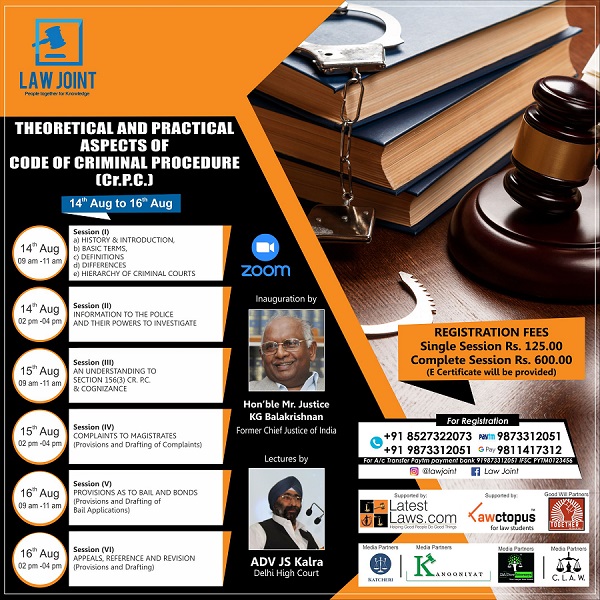 LatestLaws.com is a proud Media Partner of Lectures Series on Theoretical and Practical Aspects of Code of Criminal Procedure (Cr.PC) organised by Law Joint.