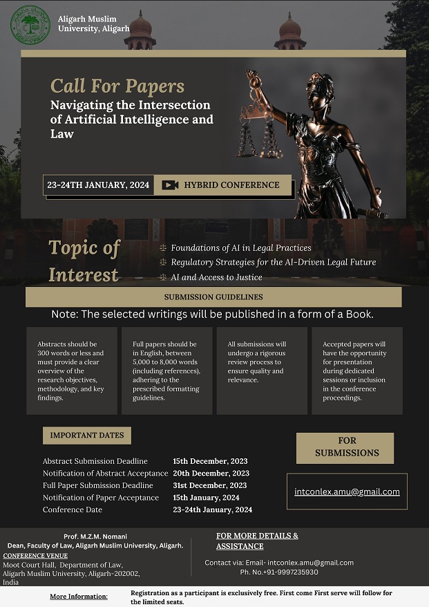 For inquiries, please contact intconlex.amu@gmail.com, +91-9997235930.