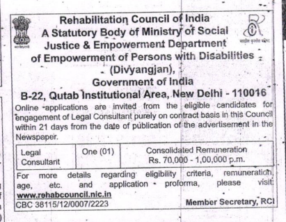 Applications are invited from eligible candidates for the post of Legal Consultant.