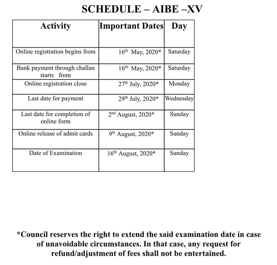The Bar Council of India has released the schedule for the 15th All India Bar Examination, 2020. The online registrations can be done from 16th May to 27th July 2020. The exam will be conducted on 16th August 2020.