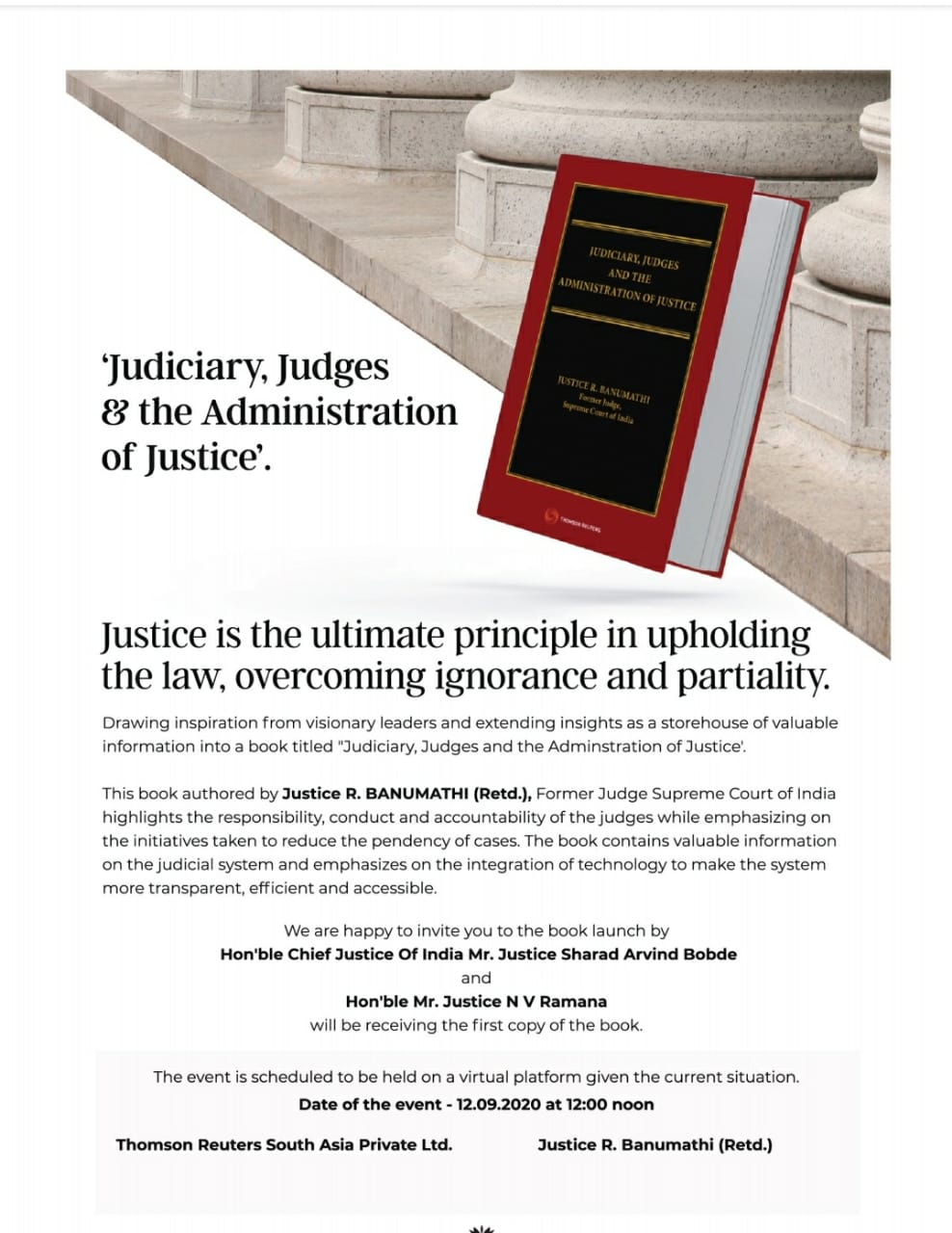 First Copy of the book shall be received by Honourable Justice NV Ramana of the Supreme Court bundled with a keynote address by him.