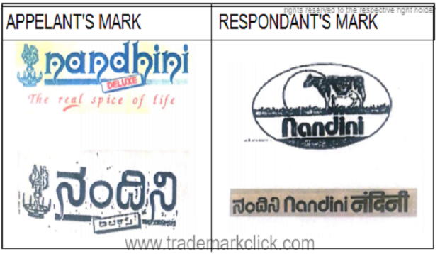 Karnataka Co-Operative Milk Producers Federation Ltd. has been producing and selling milk/milk products, since the year 1985, obtained registration for their mark ‘NANDINI’. M/S. Nandhini Deluxe, who are in the business of running restaurants since 1989 applied registration for their mark “NANDHINI”.