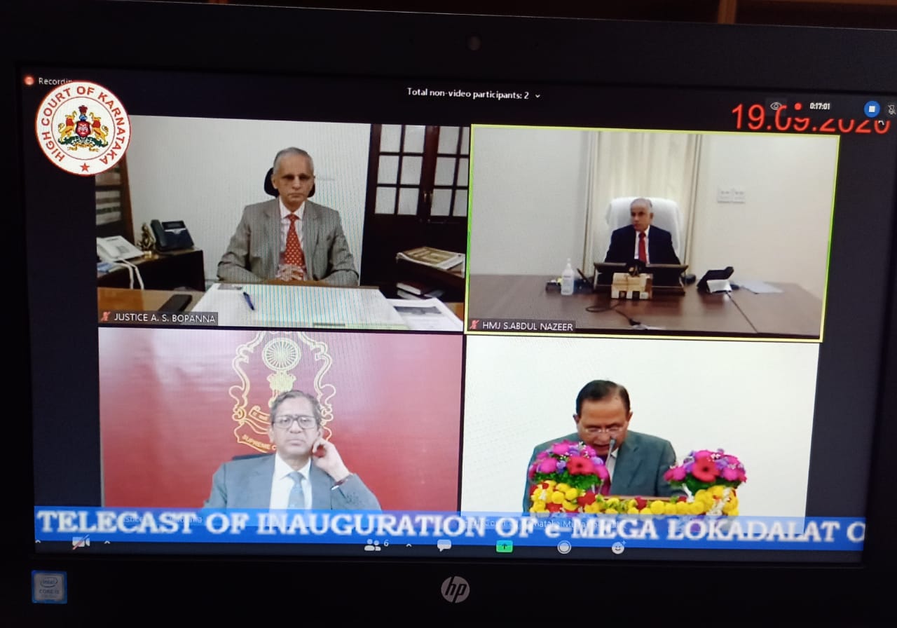 The e-inaugural ceremony of the Mega E-Lok Adalat was also attended by Hon’ble Smt. Justice B.V. Nagarathna, Judge, High Court of Karnataka and President, Karnataka Judicial Academy; Hon’ble Smt. Justice S. Sujatha, Judge, High Court of Karnataka and President, Arbitration Centre Bengaluru; Hon’ble Mr. Justice B. Veerappa, Judge, High Court of Karnataka and Hon’ble Mr Justice G. Narendar, Judge High Court of Karnataka.