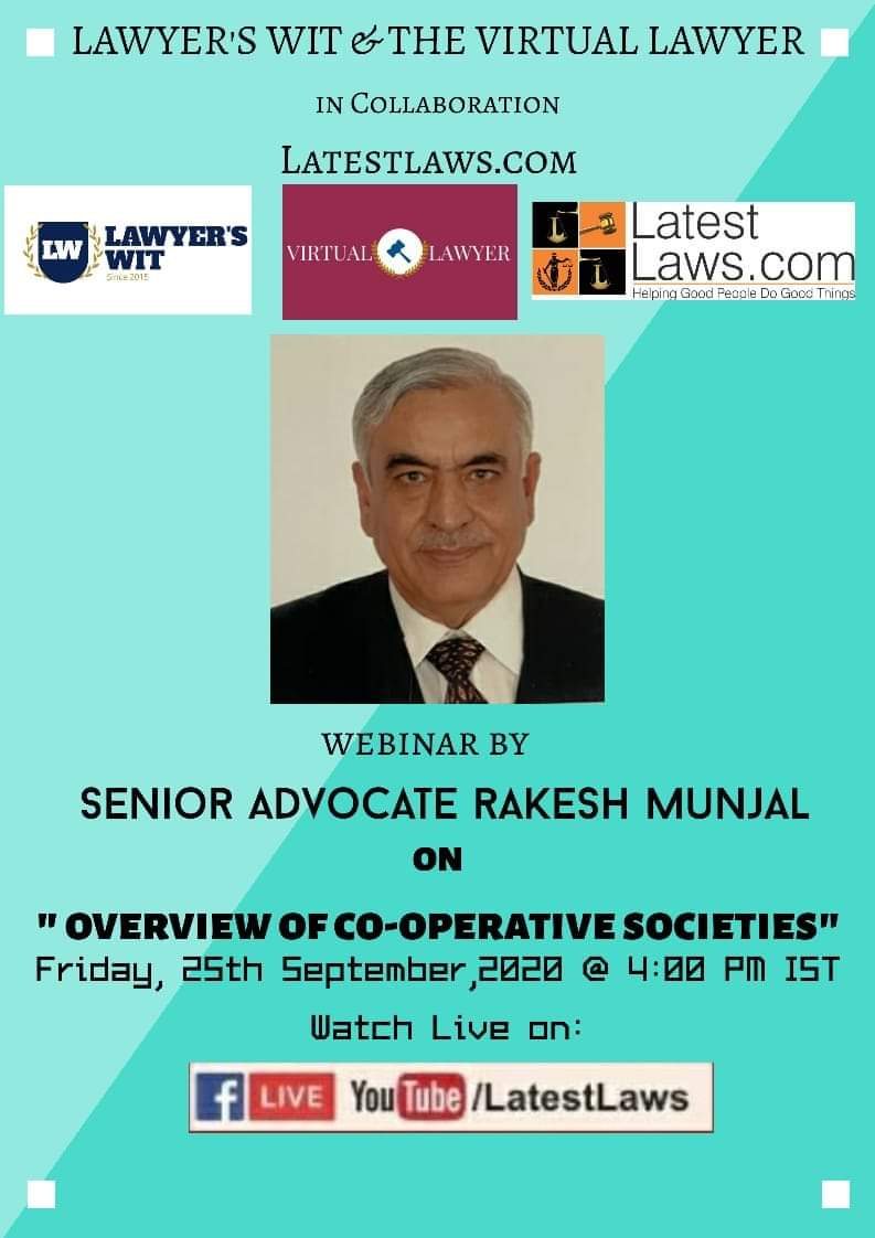 LatestLaws.com, Lawyer's Wit and Virtual Lawyer and presents Lexidem Webinar on Overview of Co-operative Societies By: Sr. Adv. Rakesh Munjal